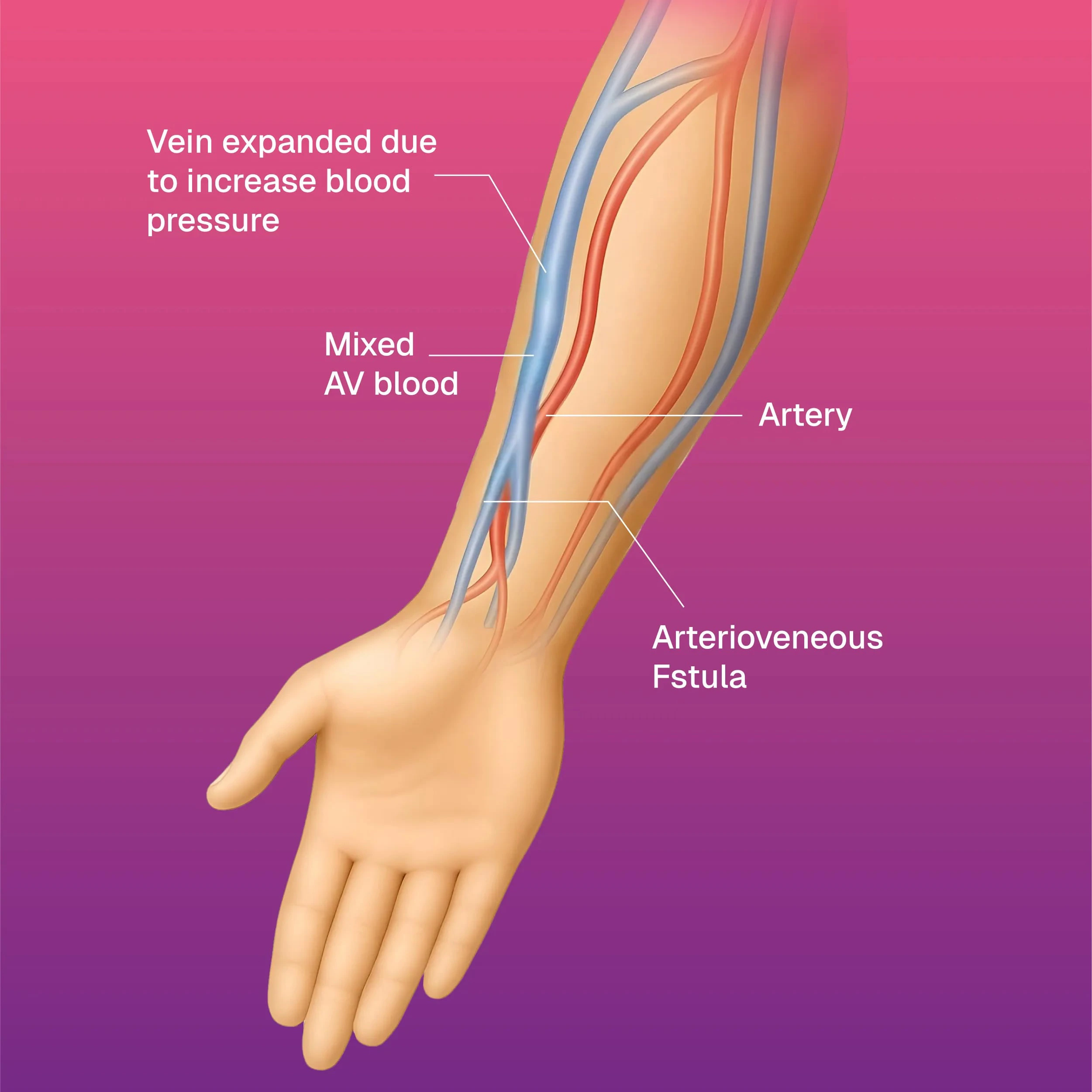 A dialysis fistula is a surgically created connection between an artery and a vein that allows adequate blood flow for hemodialysis. Over time, fistulas may develop complications that reduce their function or usability.